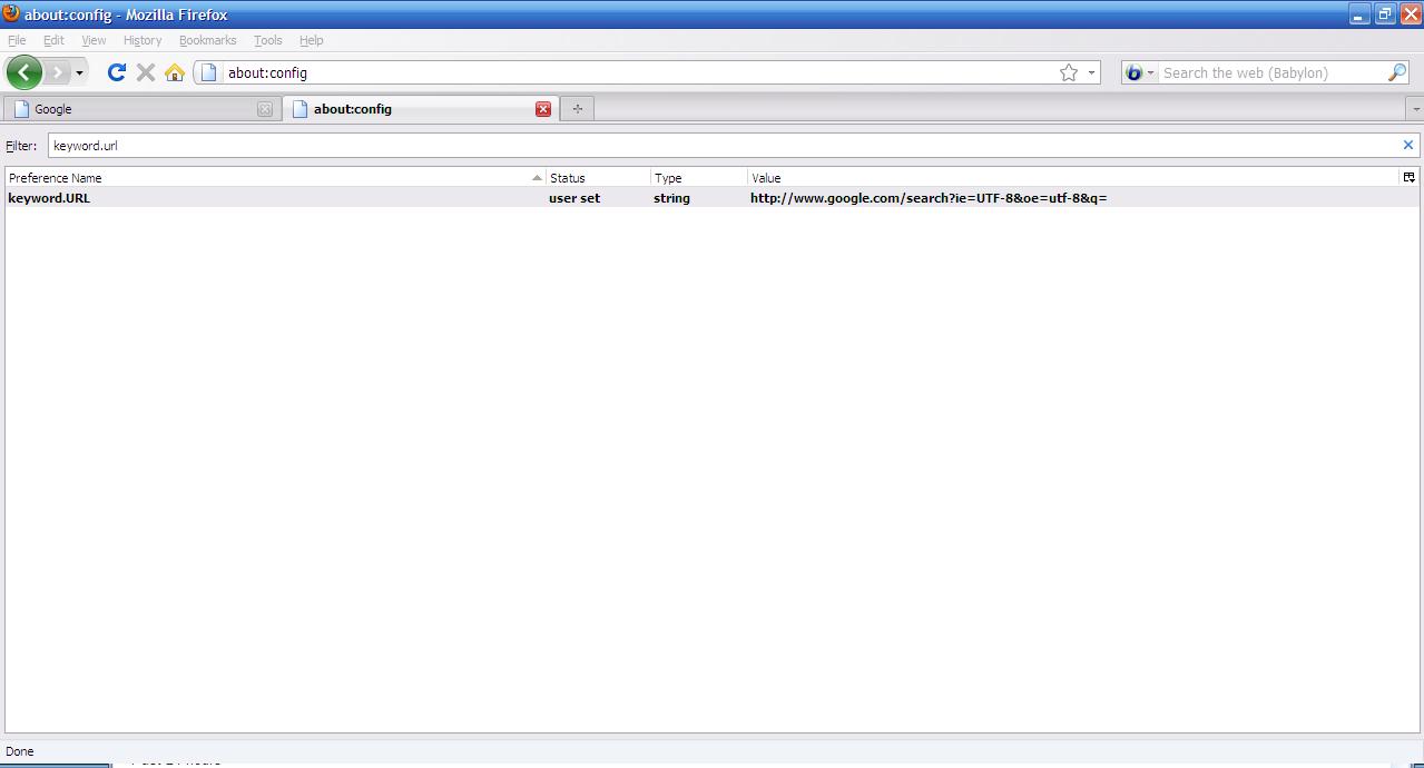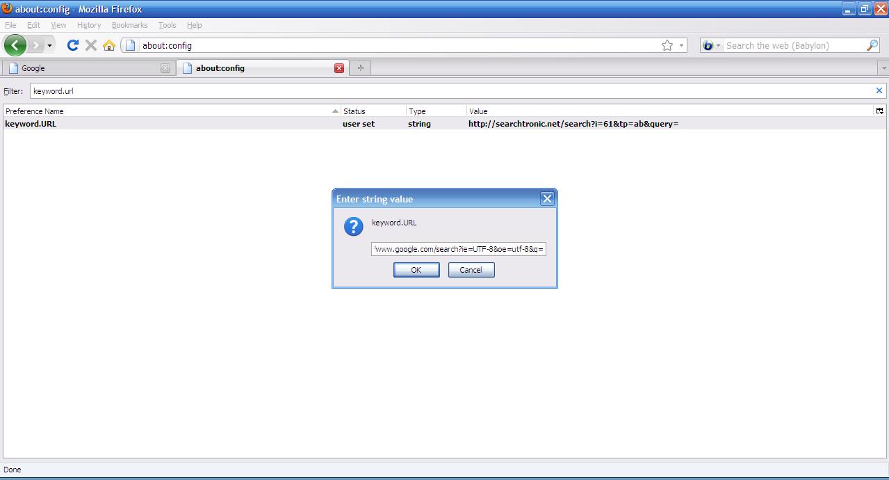 string value, copy and paste this new value http://www.google.com/search?ie=UTF-8&oe=utf-8&q=